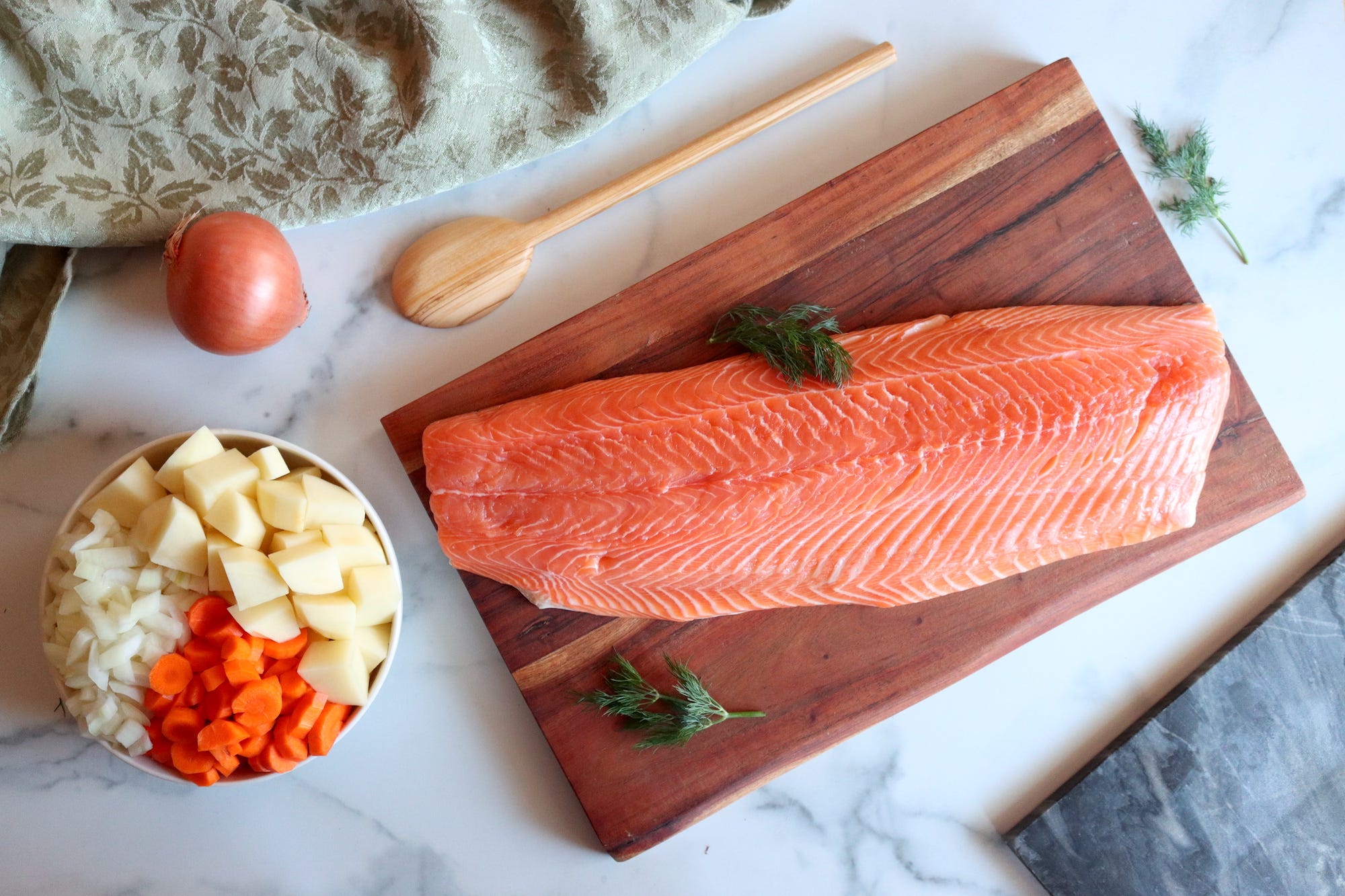 Canning Salmon Chowder Base – Rich, flavorful, and great with a splash of cream and some dill on top.